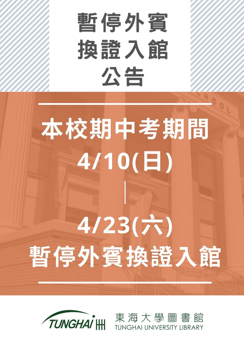 111年4月10日(星期日)~4月23日(星期六)期中考週及考前一週暫停外賓換證入館