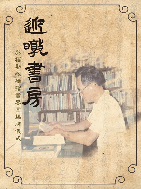 於本校圖書館四樓特藏室,將舉行吳福助教授贈書專室「迎暾書房」揭牌啟用儀式。誠摯邀請您共襄盛舉!