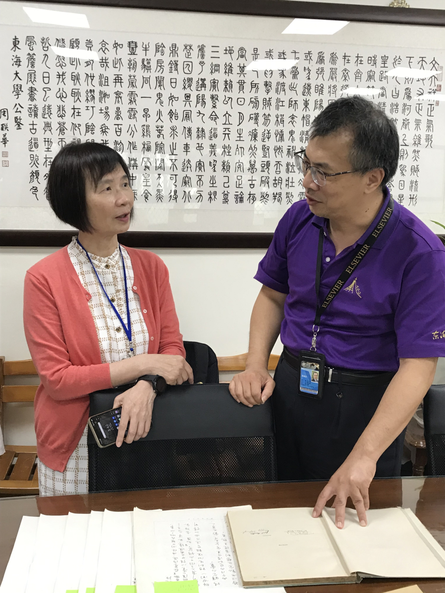 8/22下午中研院院士/台大文學院院長鄭毓瑜教授,由本校中文系黃繼立老師、林餘佐老師及哲學系潘怡帆老師的陪同下,至圖資處圖書館參訪並調閱資料。鄭毓瑜院士因參與楊牧先生(本名王靖獻,東海第五屆外文系校友)全集出版計畫,特地親自來館感謝東海圖書館日前協助提供相關資料,包括楊牧先生的學士論文、與徐復觀先生來往之書信、期刊文章等。對於本校將早期校友之學士論文保存完善予以肯定外,以及文史學界的重要學者史料豐富收藏,都是學術界研究的重要資源,並期待下回再訪交流。