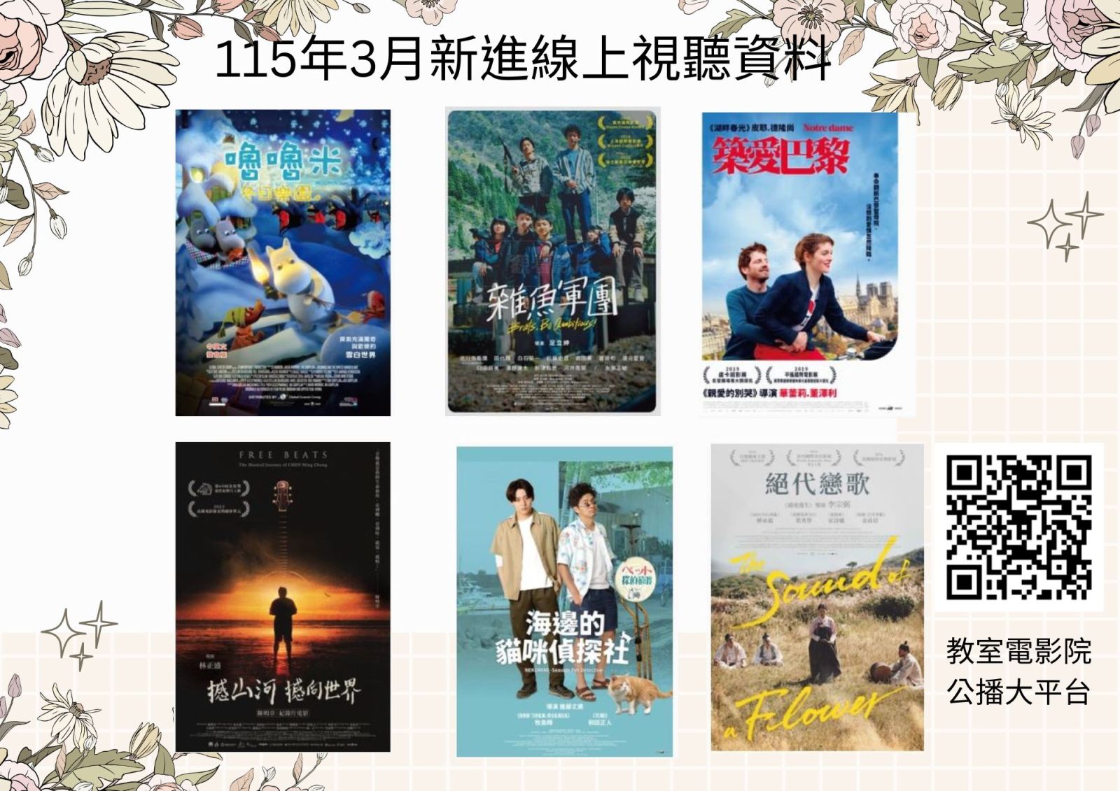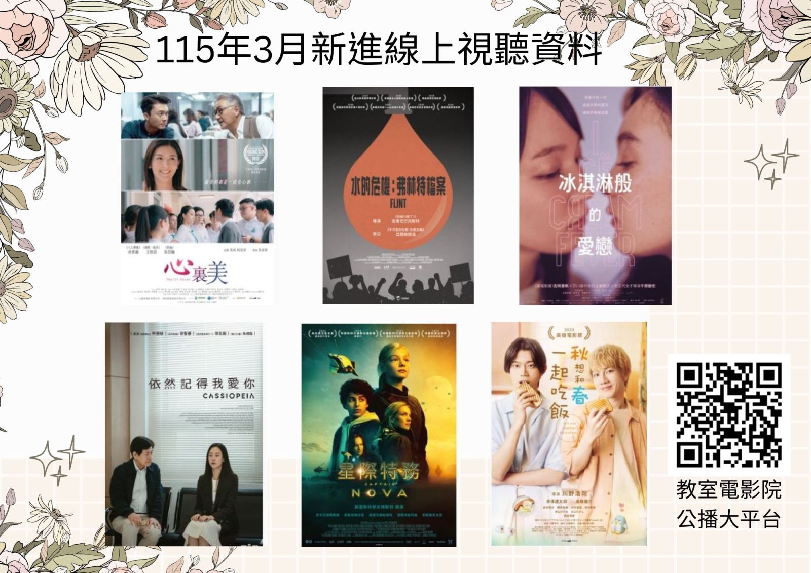 114年11月新進線上視聽資料(教室電影院公播大平台) 校外使用請先設定VPN