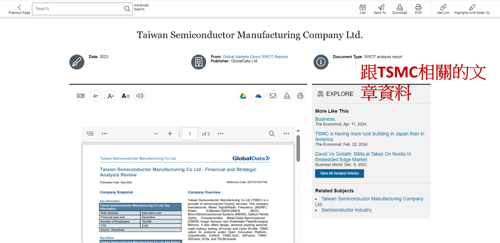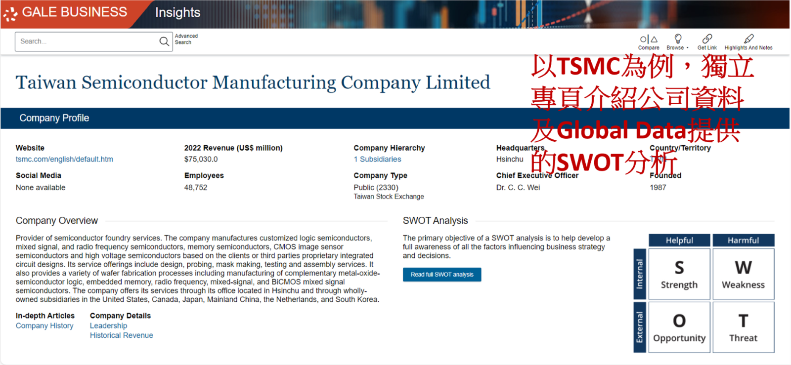 商業資源中心(1)- 可直接連結TSMC的網址 - Taiwan Semiconductor Manufacturing Company Limited - Topic - Gale Business: Insights