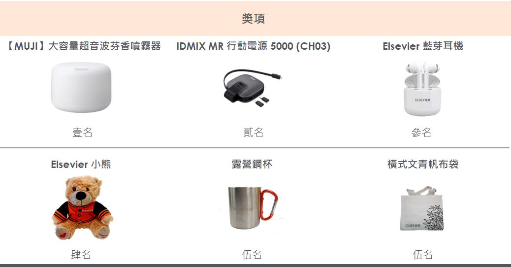 請勿重複作答!全對者即可參加抽獎!本活動由 Elsevier 抽出名得獎者,得獎名單於 2022/5/6(五)前以電子郵件通知得獎者並公告。 |