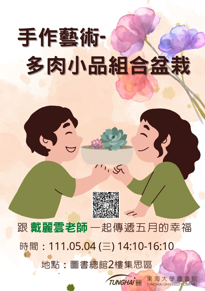 活動日期:111年5月4日(星期三) 活動時間:14:10~16:10 活動地點:圖書總館2F 集思區 活動報名網址:https://event.ithu.tw/2022040063