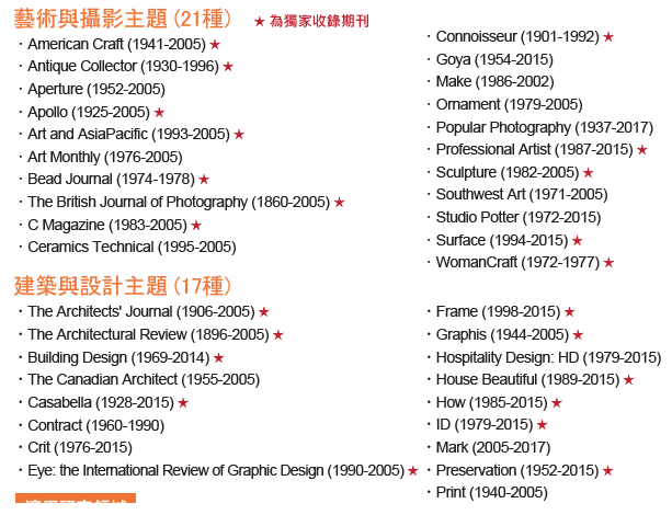 資料庫名稱:《Art & Architecture Archive》 藝術與建築期刊典藏庫