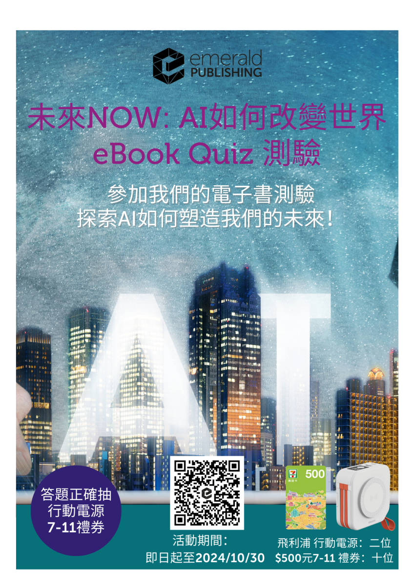 這次的Emerald eBook Quiz精選了四篇關於AI應用於不同領域的深度文章,快來挑戰並了解AI如何改變世界吧!