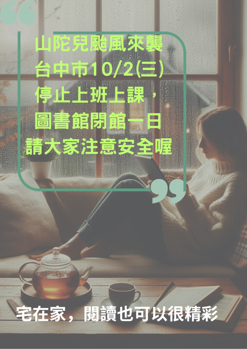 山陀兒颱風來襲10月2日台中市停止上班上課圖書館閉館一天