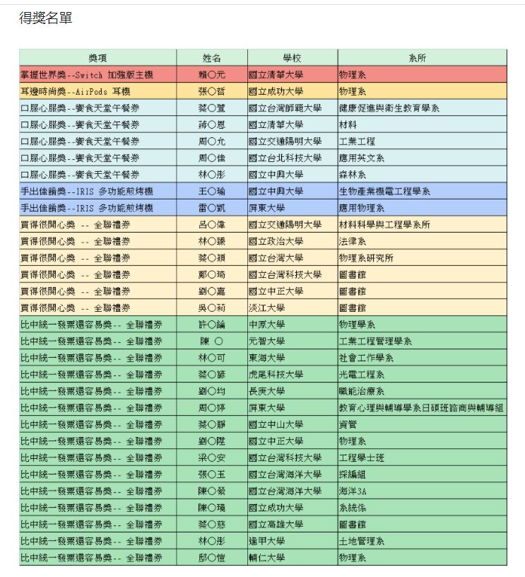 2021 物理推動中心-生活中的時尚很物理 PRPC AIP 有獎徵答活動,得奬名單公布。